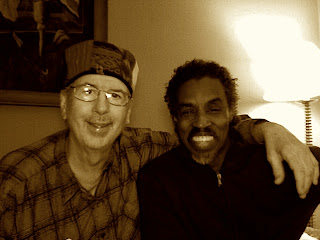 That's Bahati who came to hangout and dig some tunes last night. Well I have to thank all our friends for the delicious food. Last night Phyllis's Chicken Caciatore, Sunday Brians Orzo salad and chicken, Brendas amazing healing Chicken soup, Jon's Chili and Chicken, this week Billy brings by some crockpot healing food, I loved Suzy's Lasgna, fab. So thanks all. Yesterday morning was a gas at the Pancake house with the JCHS retirees. My legs (Edema/burns) and sugar are still the big problems, but were dealin'. Ellin, the Diabetic Educator at MSKCC called me and spent 1/2 hour over the phone going over the numbers, the diet etc. Such care. Today we have a 2 pm with ENT at MSKCC. Tomorrow 2 apptmnts. Hope to get a new Christmas tree today, the old one has had it. Can't wait to digout the pld Christmas balls and lights. Lotta memories. See you all soon. JIMBO